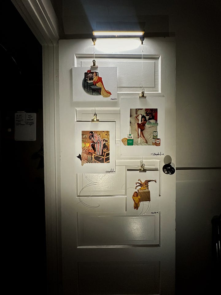 For those who weren’t able to come to the show because you were huddled under an AC vent (rightfully) or because you live outside Los Angeles, I’m happy to announce that for the first time, I will be selling original Stepdad Collages online.